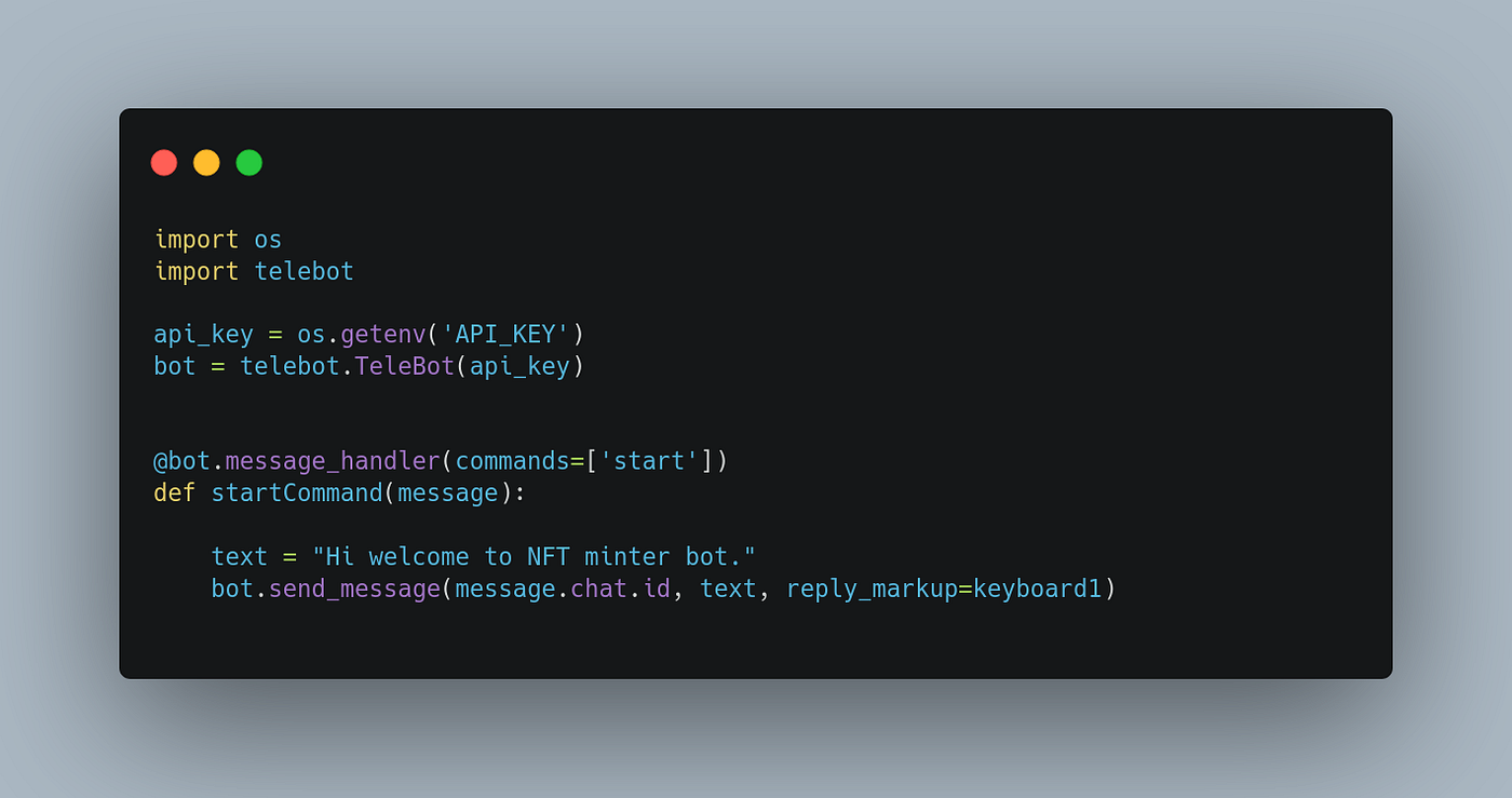 This is the last article in a series to learn you how to create a dynamic NFT bot. We will use Python and pyTelegramBotAPI to create a simple Telegram bot that can create dynamic NFTs for us.
