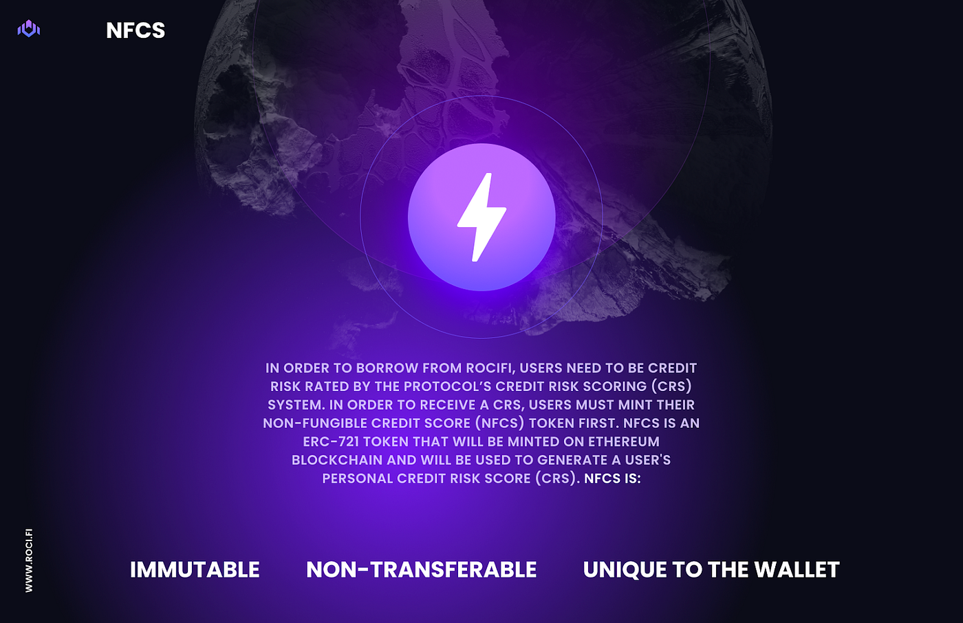 RociFi is building the first DeFi credential that verifies credit, reputation, and trust in one ERC-721 token — NFCS. The NFCS is free, fast, and easy to mint. It is also immutable, non-transferable, and continuously updated.